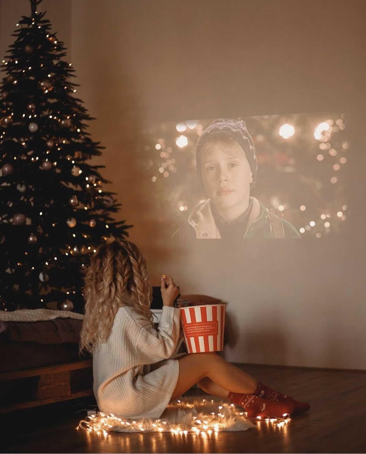 Фотосессия в стиле зимнего кино (например, «Один дома», «Реальная любовь»)