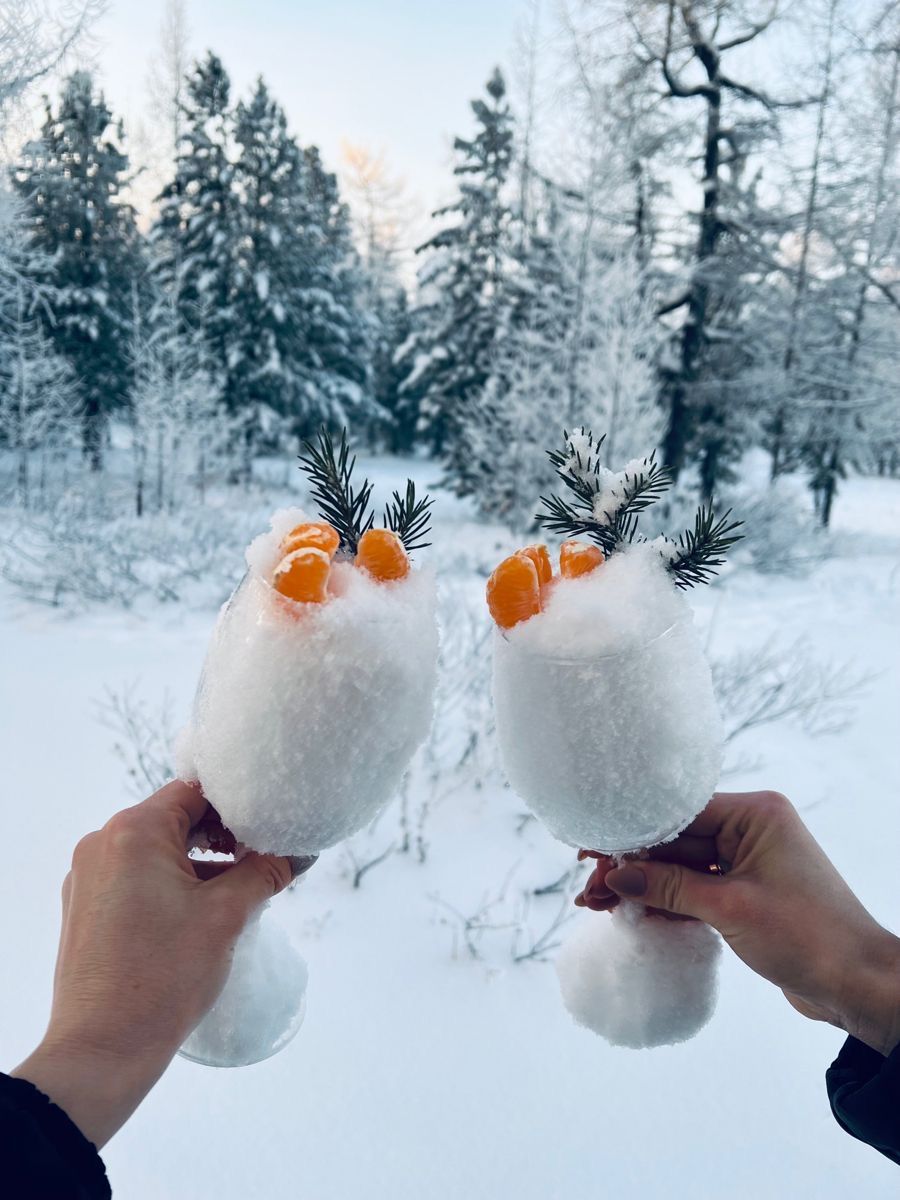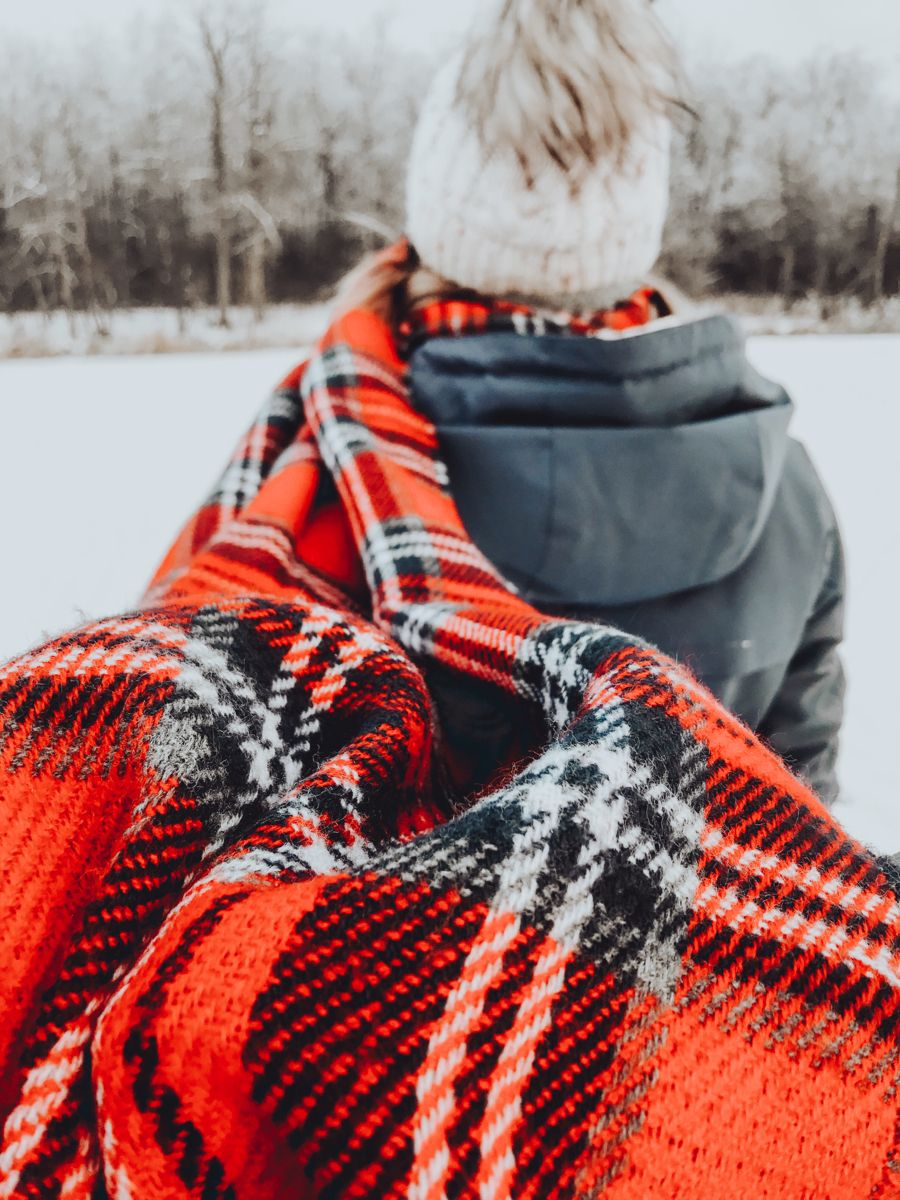 Уют на природе: чаепитие с пледом на снегу