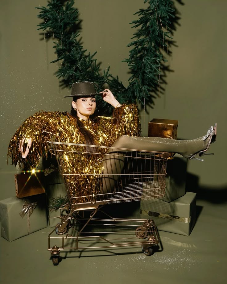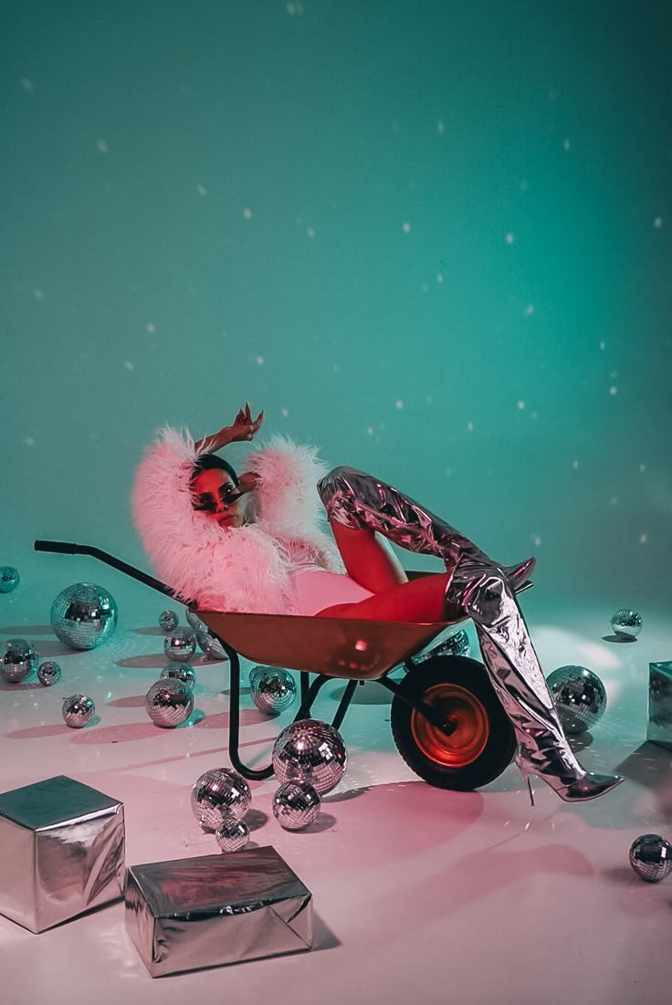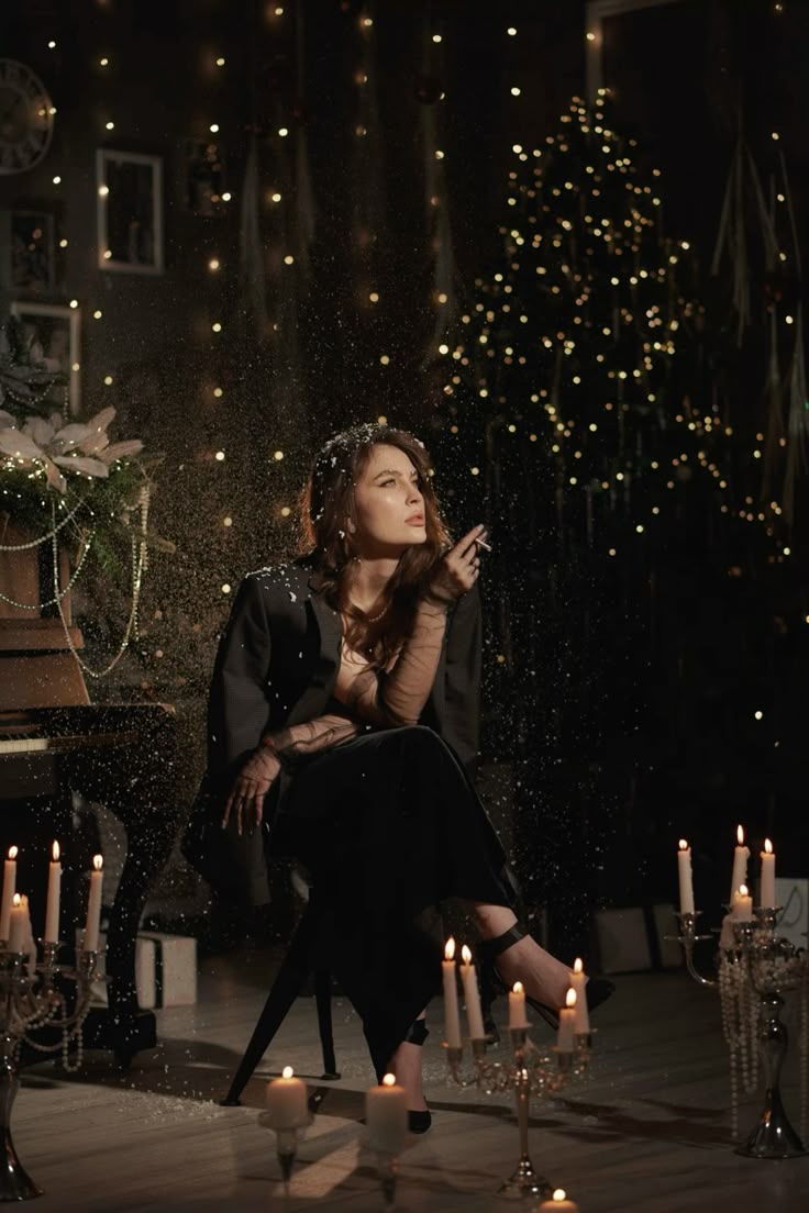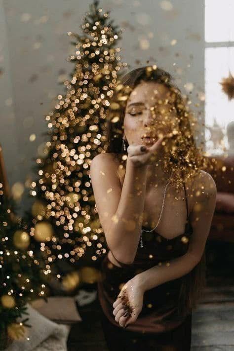 Минималистичный подход, который позволяет сосредоточиться на модели. Простой белый фон (можно использовать рулон бумаги или светлую стену) в сочетании с гирляндой, дождиком или искусственным снегом создает элегантные и стильные кадры. Блестки, аккуратно нанесенные на кожу или волосы, добавляют снимкам праздничного мерцания при правильном освещении.