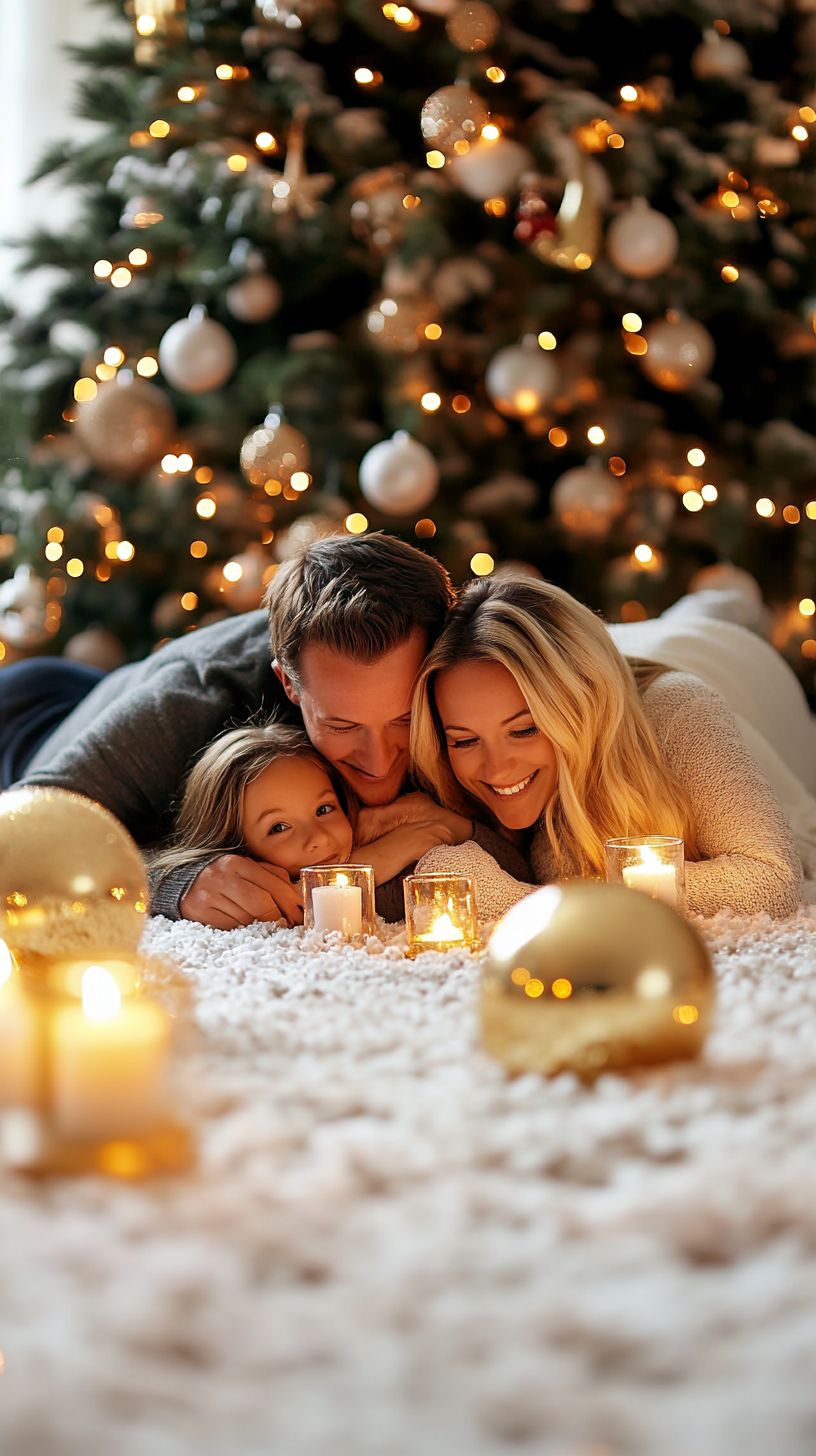 Для домашней съемки ключевым становится создание уюта. Используйте интерьер с елкой, диваном с пледами или празднично сервированным столом. Главная проблема — частое отсутствие большого количества естественного света, который необходимо компенсировать грамотным использованием гирлянд и дополнительных источников освещения.